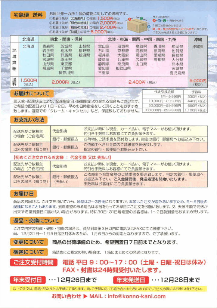 info@konno-kani.com までお問い合わせください。